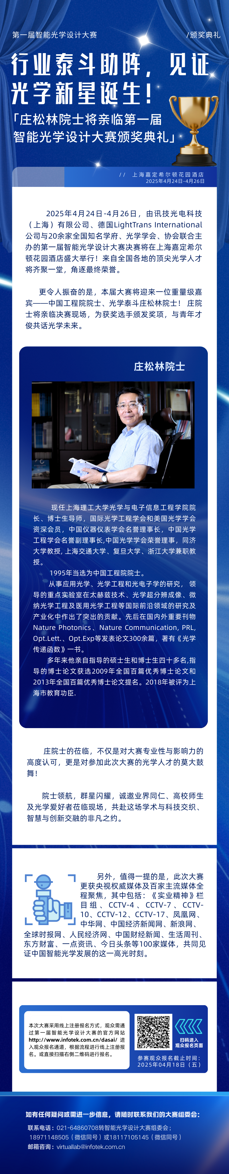 莊松林院士將親臨第一屆智能光學(xué)設(shè)計(jì)大賽頒獎(jiǎng)典禮