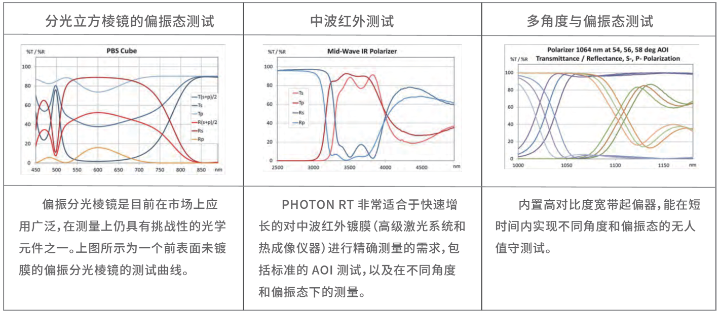超寬光譜測量范圍( 185-5200nm )下,可測平板光學材料的光學薄膜特性:絕對反射率、絕對透過率、薄膜材料吸收率、光學密度;