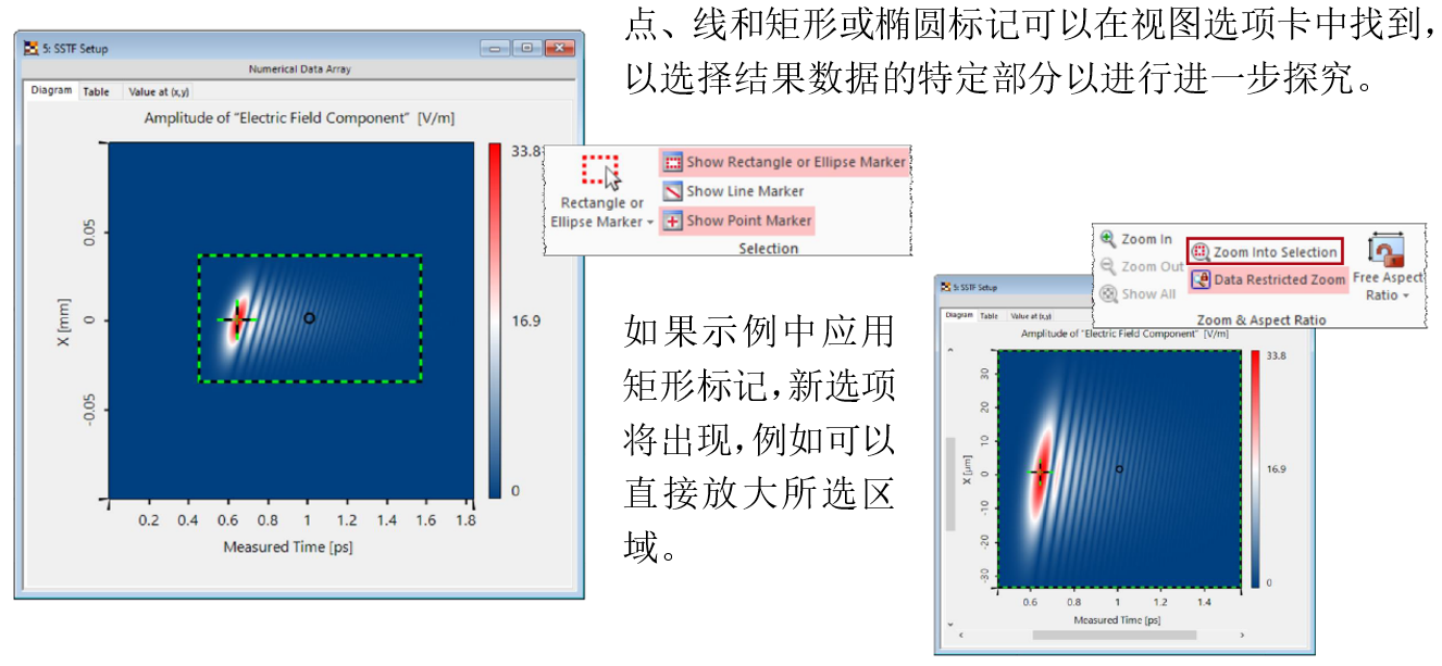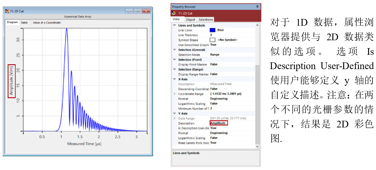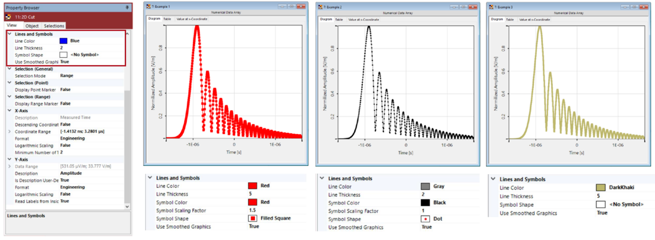 對于一維數據,可以利用符號來指示曲線中的實際采樣點。 它們的外觀可以在屬性瀏覽器中進行調整。