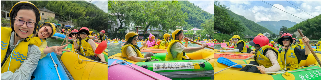 下午來到風景優美的浙北峽谷漂流點,員工們穿戴好救生衣和頭盔,登上準備好的皮劃艇。暫時放下工作的緊張,大家在青山綠水間體驗了既刺激又暢快的漂流。同事們互相配合,共同劃槳,水花伴著笑聲飛濺。這次漂流不僅讓大家玩得痛快,有效釋放了壓力,更在協作中增進了彼此的情誼,讓團隊氛圍更加融洽。