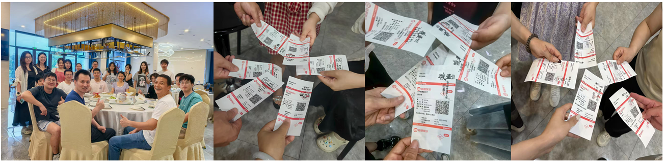 漂流活動結束后,團隊乘車入住長興博陽開元名庭大酒店,并共進晚餐。豐盛的晚餐讓大家放松下來,愉快交流。飯后,同事們自由組合,分組觀看了喜歡的電影,包括《南京照相館》、《浪浪山小妖怪》、《戲臺》以及體育賽事直播。不同的選擇給大家提供了放松和聊天分享的空間。