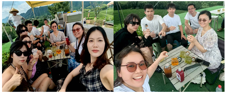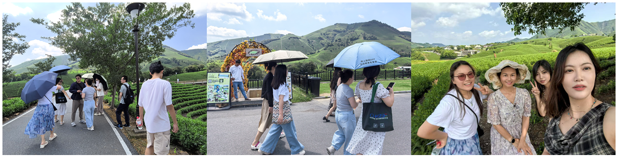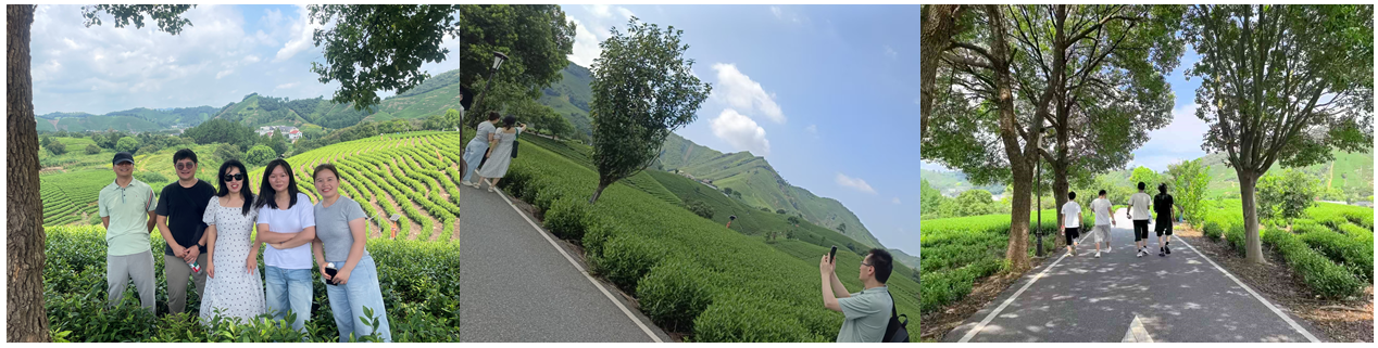 8月3日上午,團隊前往安吉白茶觀景臺。大巴一到站,平日埋頭工作的同事們立刻像出籠的小鳥,興致勃勃地漫步山間小路,呼吸著沁人的茶香。站在觀景臺上,眼前是一望無際、連綿起伏的翠綠茶園。這片被人民日報點贊、生動展現“綠水青山就是金山銀山”理念的地方,其壯美的景色令人心曠神怡。大家在茶園里悠閑地品茶,感受這份寧靜和美好。