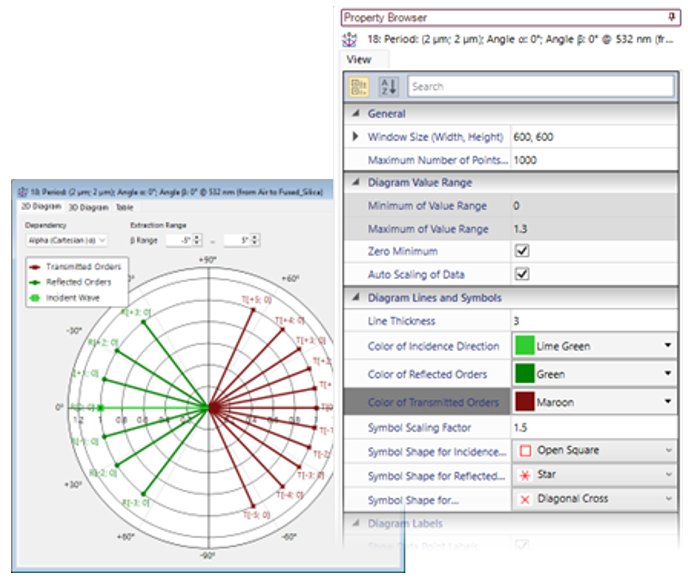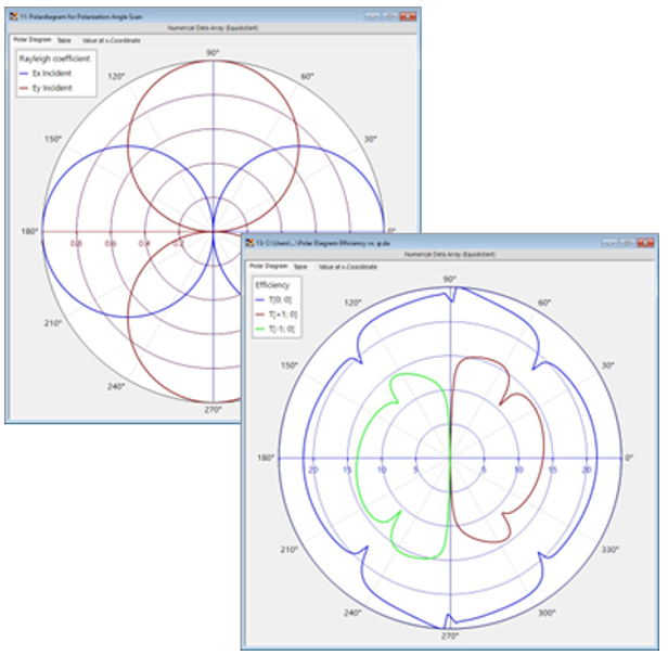 • VirtualLab Fusion的極坐標圖視圖(polar diagram view)現(xiàn)在可以無縫處理 0°-360° 的數(shù)據(jù)范圍,在適當情況下會自動顯示完整的 2π 圓。