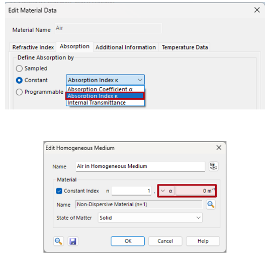 • VirtualLab Fusion 現(xiàn)在支持定義材料和均勻介質(zhì)的吸收特性: