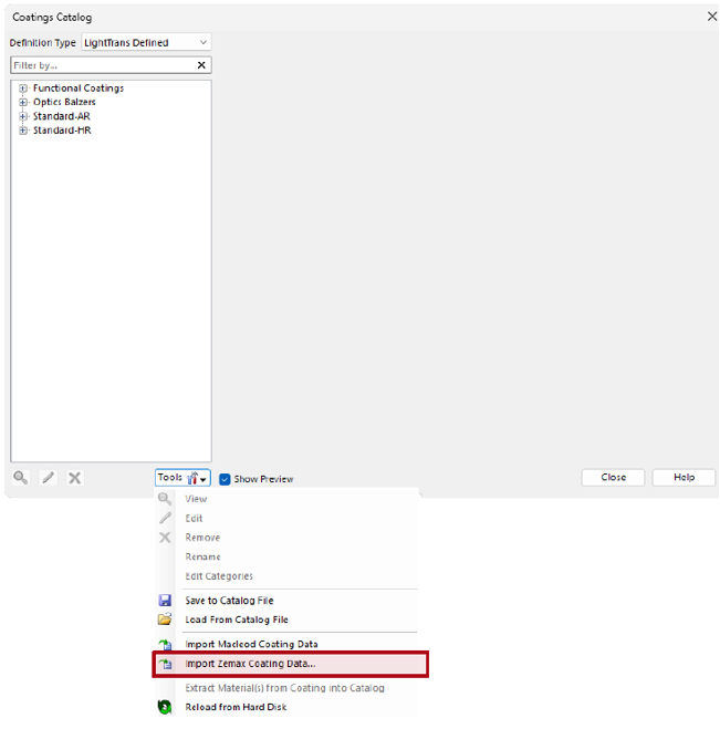 • VirtualLab Fusion 2025.1引入了從 Zemax 透鏡系統(tǒng)自動導入膜層的功能,以及一個用于直接目錄集成的專用工具。