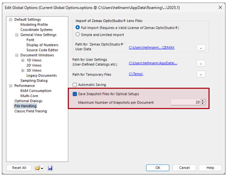 ‐ 在 VirtualLab Fusion 中,可將任何光學設(shè)置的最大快照數(shù)量設(shè)置為全局選項。