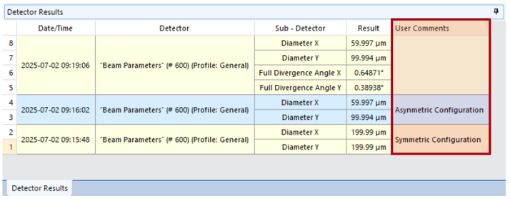 • 我們在 VirtualLab Fusion 中增強了處理探測器結(jié)果的方式。探測器結(jié)果表格現(xiàn)在支持用戶自定義評論,通過直接在結(jié)果中添加有意義的注釋,更容易跟蹤和比較模擬結(jié)果。