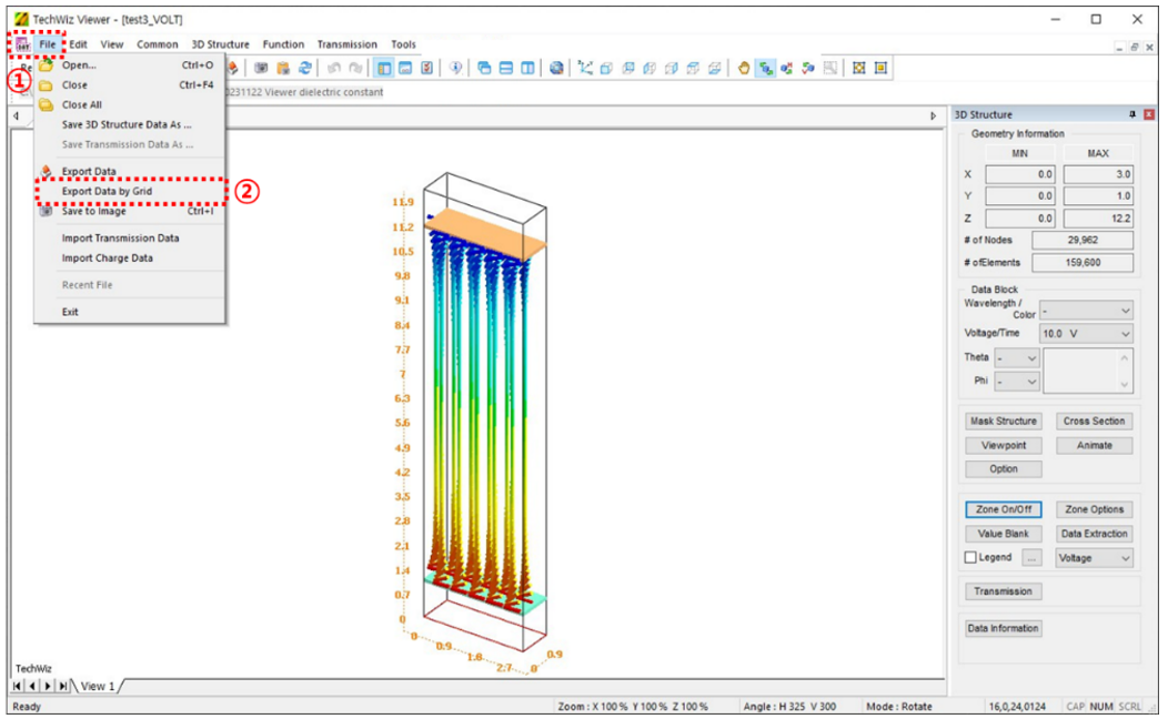 Viewer / File / ‘Export Data by Grid