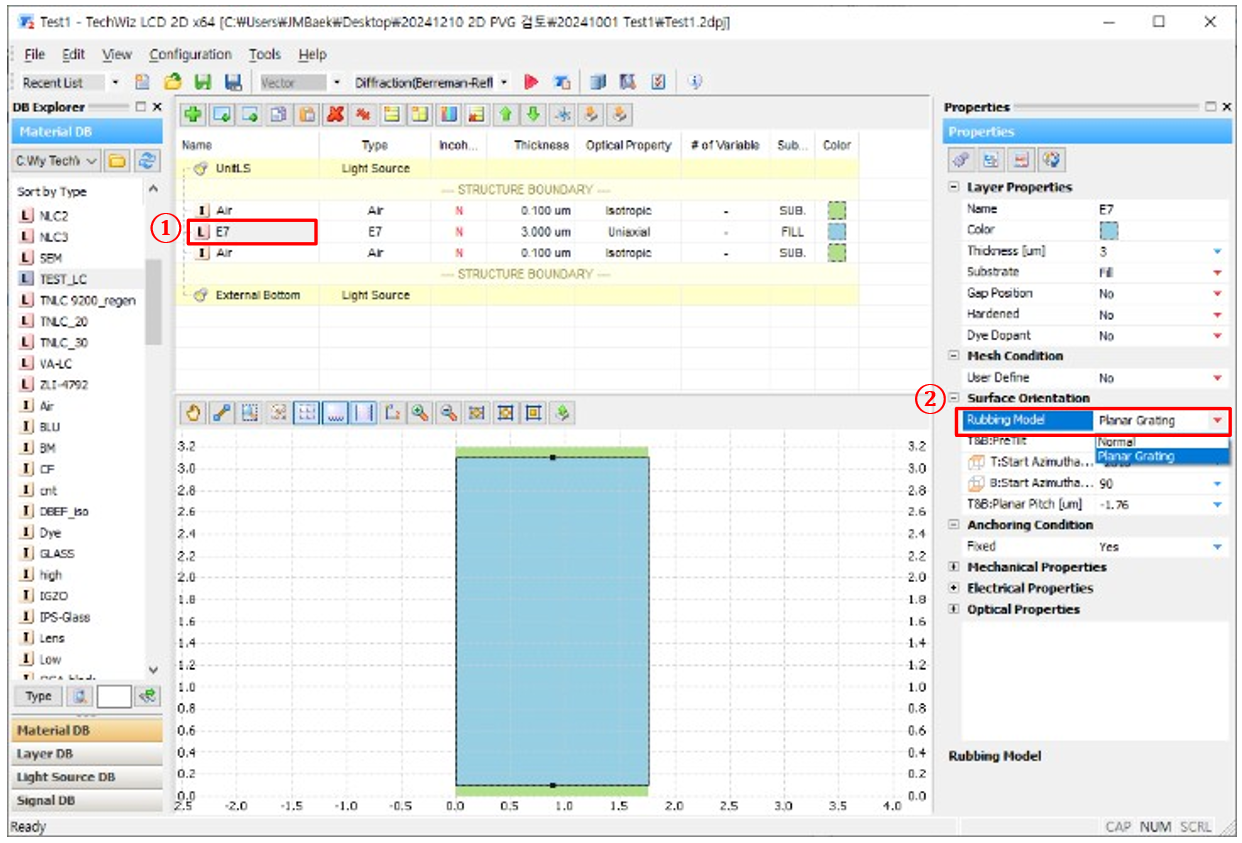 TechWiz LCD 2D / LC / Properties / Surface Orientation / ‘Planar Gratng’