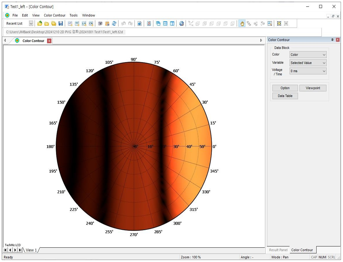 j) ①極坐標圖→ ②選擇顯示(反射)→ ③ 選擇數據(色彩輪廓)→④ 繪制