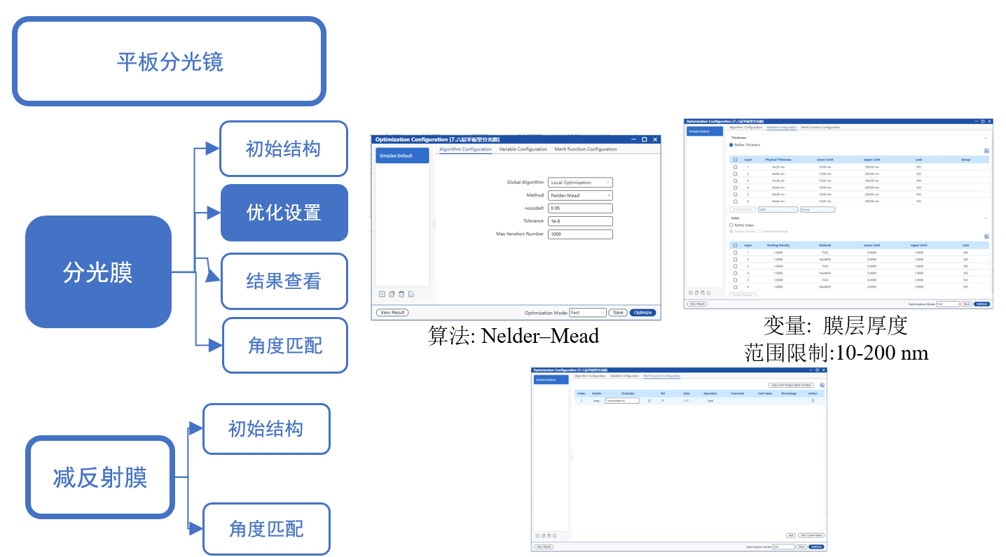 優(yōu)化后的膜系在 0° 入射下已滿足設計指標,但在 45° 入射時(黃色虛線),最大反射率超出設計要求 8%,因此后續(xù)仍需進行角度匹配調整。