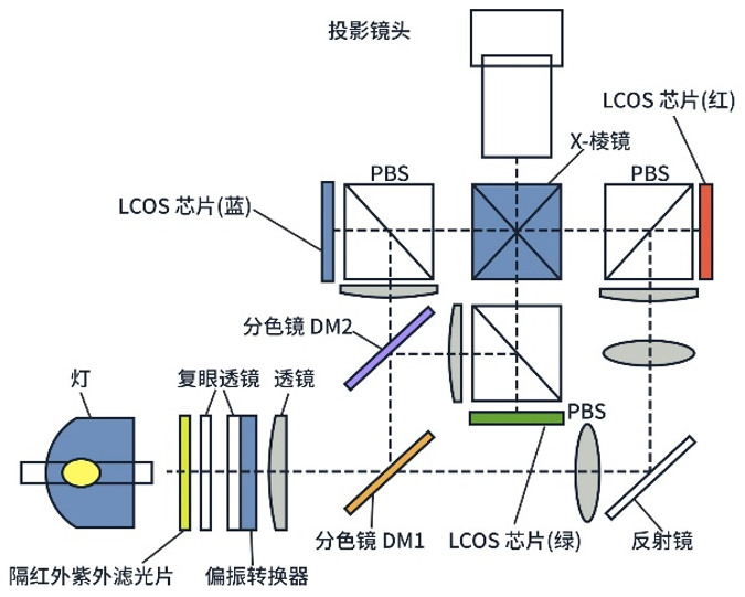 投影機中所使用的隔紅外紫外濾光片的主要作用是濾除燈源光譜中的紫外光和紅外光。420 nm以下的紫外光會對光學芯片造成損傷,而700 nm以上的紅外光會導致芯片溫度升高,進而影響其壽命。此外,紅外波段對圖像亮度的貢獻可以忽略,因此通常需要濾除波長小于420 nm和大于 700 nm的光譜成分。