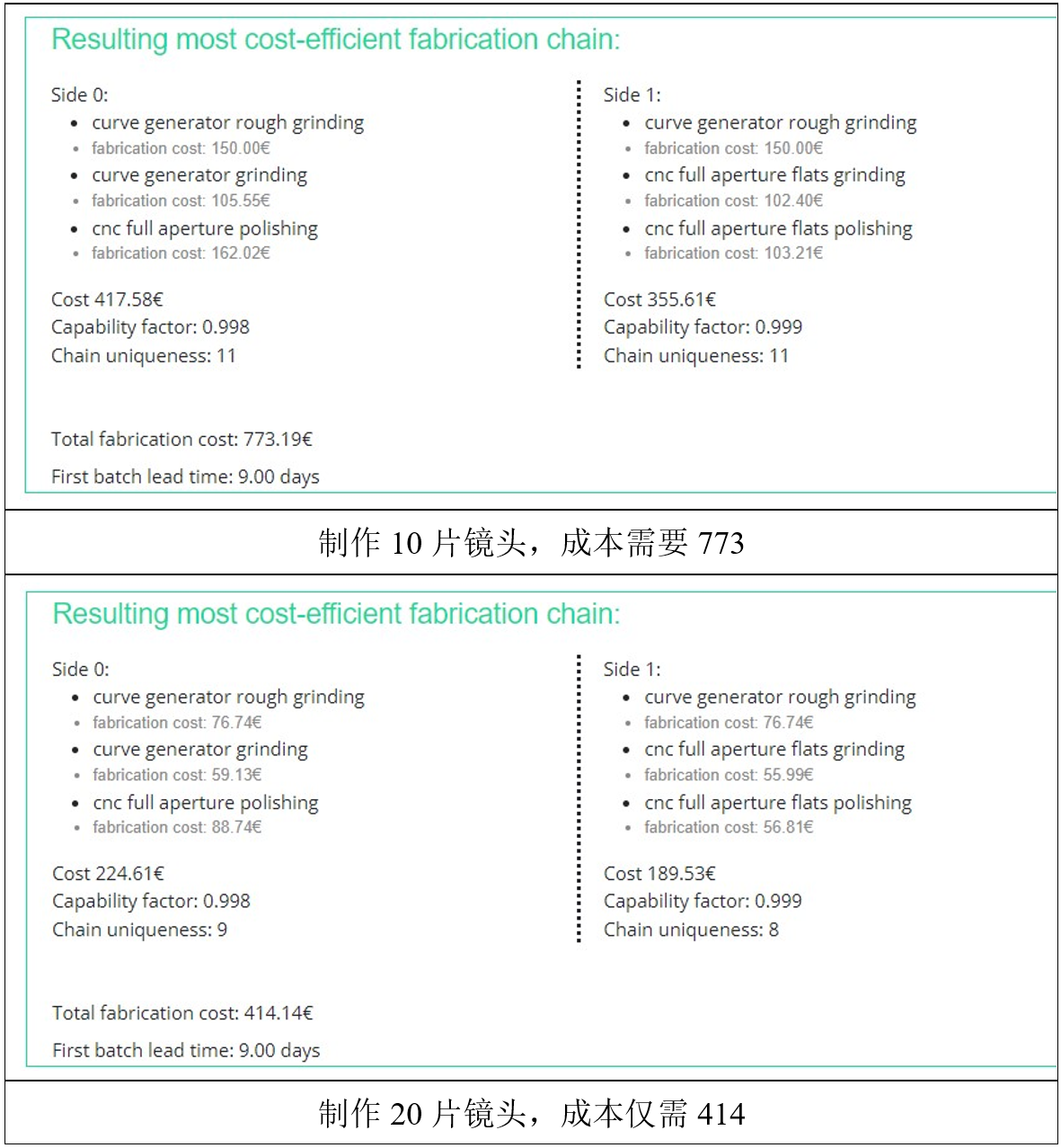 c) 智能創新的PanDao算法,將物理原理與制造性能相匹配,使超過360種光學制造技術與光學元件的70多個關鍵參數之間能夠進行交互,并最終以最小化成本和風險實現整個光學制造鏈的模擬和優化。