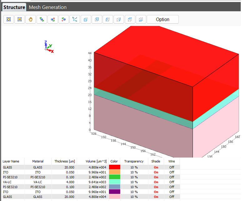 結構創建完成后在TechWiz LCD 3D中加載并進行相關參數設置