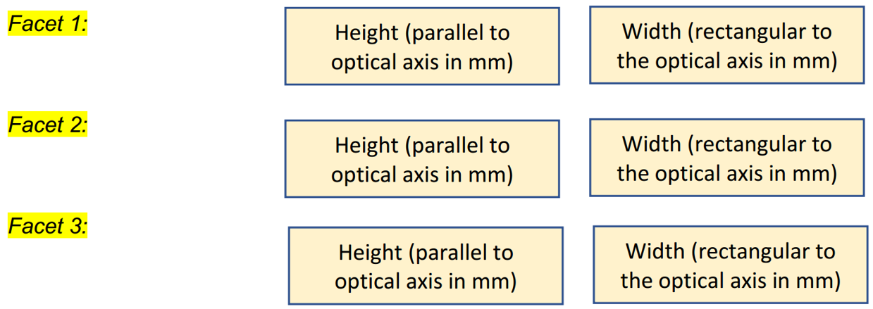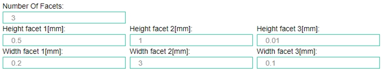 • 矩形面形臺階(對應面形章節示意圖中的編號2和3):需輸入高度與寬度,例如“面形1:0.5 mm(高) / 0.1 mm(寬)”;
